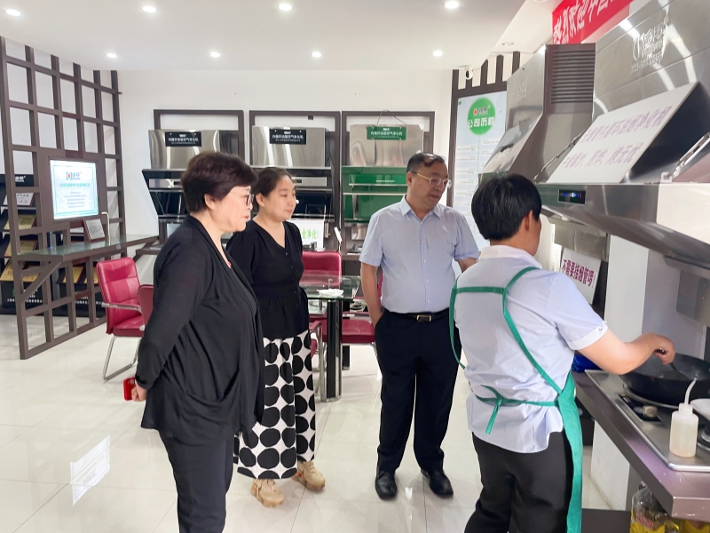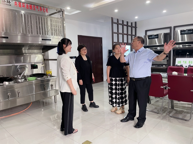隨后,公司帶領協(xié)會領導們參觀了樣品間和展示廳。在展示廳內,市場總監(jiān)何楊介紹了多環(huán)公司自主研發(fā)生產的7款“內循環(huán)油煙凈化機”專利產品,對每款產品的性能、應用場景都一一做了講解。參觀過程中,李基英副理事長和邵白秘書長與工作人員密切交流,詢問了解產品的特點,并由操作員現場演示爆炒辣椒、洋蔥,經多環(huán)公司生產的“內循環(huán)式油煙空氣凈化機”的處理,可做到不需要外接煙管直接采用吸排凈化一體的形式直接在室內就將烹飪中產生的油脂、煙顆粒物、異味、有害氣體及余熱進行了全部的凈化處理,機器排出來的就是干凈的空氣,在房間內完全聞不到辣味嗆味。協(xié)會領導看到眼前這一幕,當場對產品的性能贊不絕口。