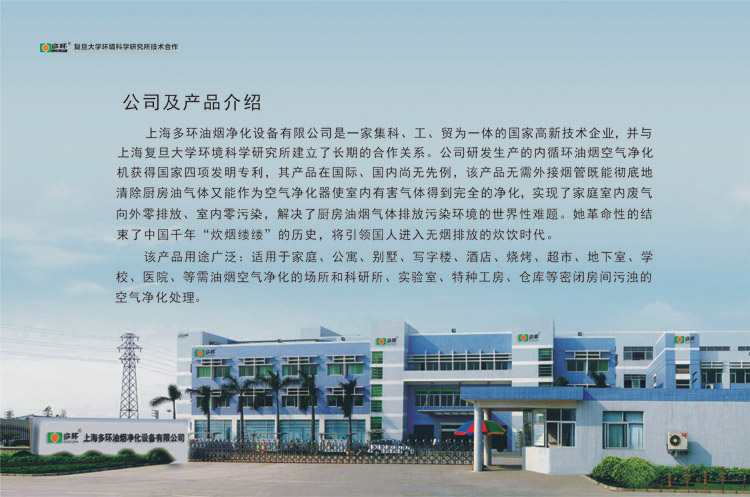 無煙管內(nèi)循環(huán)油煙凈化器是采用高科技手段將廚房及烹飪場所產(chǎn)生的有害氣體在室內(nèi)進行凈化處理的一種電器設(shè)備。目前國內(nèi)、國際尚無該種設(shè)備的先例。上海多環(huán)油煙凈化設(shè)備有限公司科研團隊從解決社會大氣污染及凈化家庭室內(nèi)空氣出發(fā)經(jīng)過多年的研究和實驗開發(fā)生產(chǎn)出了一種適合國人烹飪需要的不用接煙管向室外排放的內(nèi)循環(huán)油煙凈化器,它的主要特點是將人們廚房生活產(chǎn)生的廢氣通過室內(nèi)安裝的凈化器進行凈化處理,實現(xiàn)了家庭室內(nèi)廢氣向室外不排放,室內(nèi)室外無污染,解決了廚房油煙氣體排放污染環(huán)境的世界性難題。
